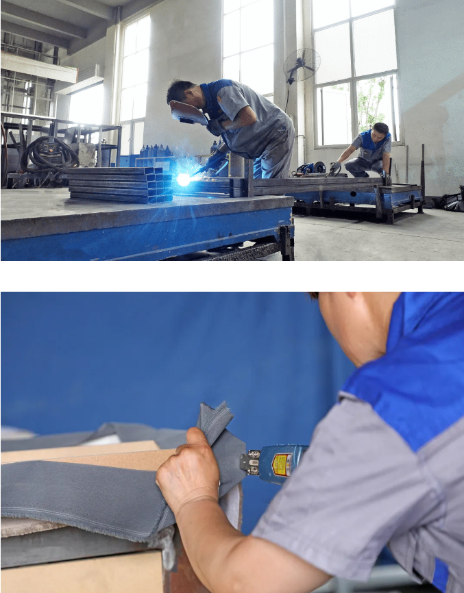 在展柜的生产车间里,机器轰鸣,焊花四溅,工人们忙碌的身影来回穿梭,形成了一道靓丽且独特的风景线。